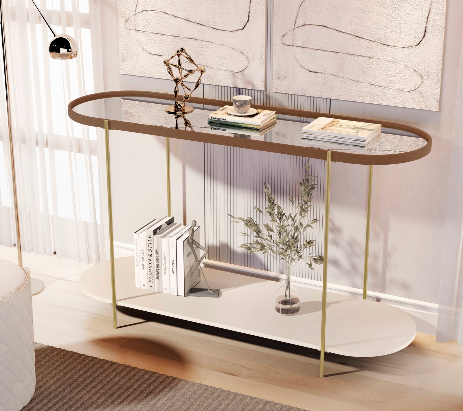Aparador Alamanda Castanho/Off White Pe Dourado