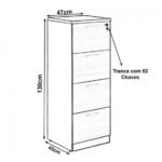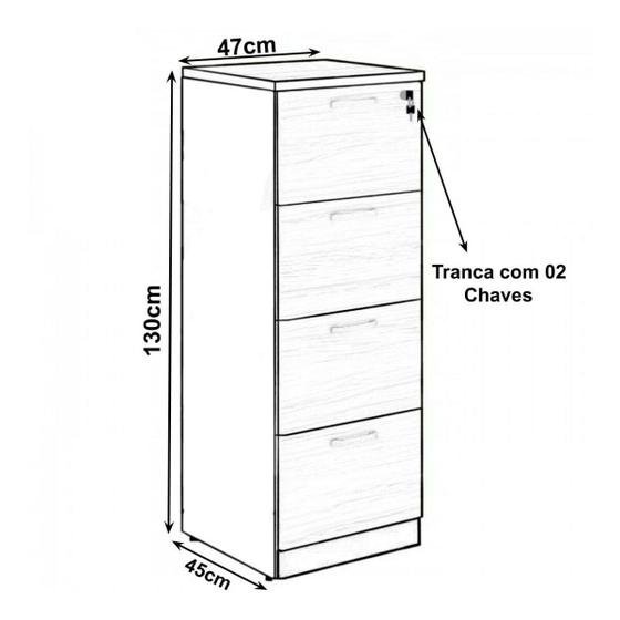 Conteúdo da Embalagem: Arquivo de Madeira 04 Gavetas para pasta suspensa