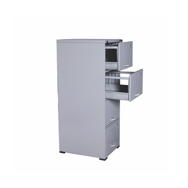 Arquivo de aço com 04 (quatro) gavetas c/ batoque de nylon puxador, para pasta suspensa. Pode ser utilizado em qualquer ambiente, ideal para escritórios e até mesmo em residências. Produzido em aço de alta qualidade, com tratamento anti-ferruginoso, possui 04 gavetas com sistema de rolamentos para abertura das gavetas e com fechadura. O acabamento em sistema de pintura eletrostática a alta temperatura a pó (epóxi) também garante maior durabilidade da cor e resistência à ferrugem.