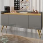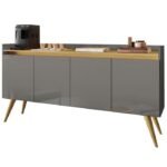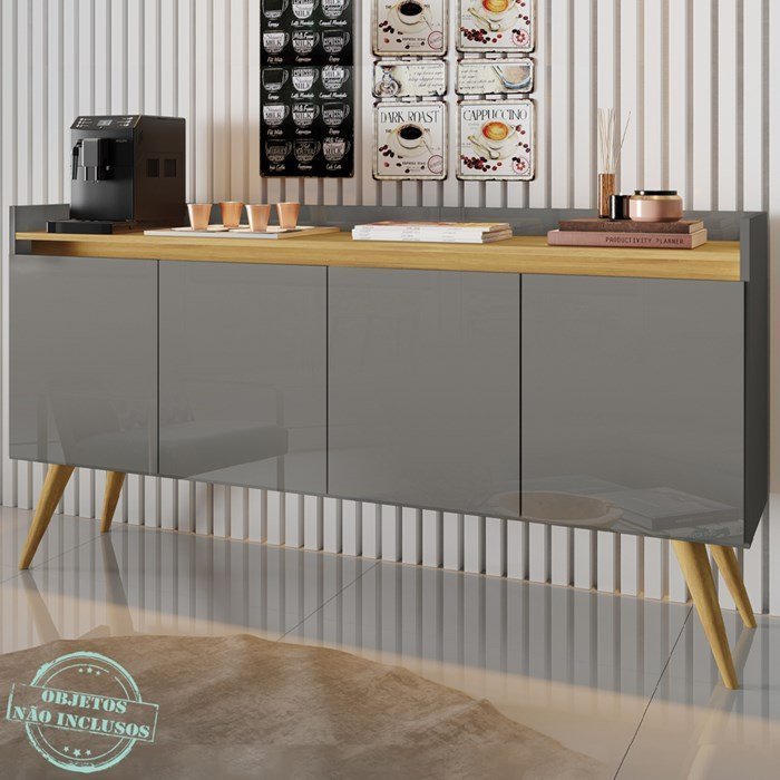 Buffet Gold 4 Portas Preto Com Mel Primus Cinza/Mel