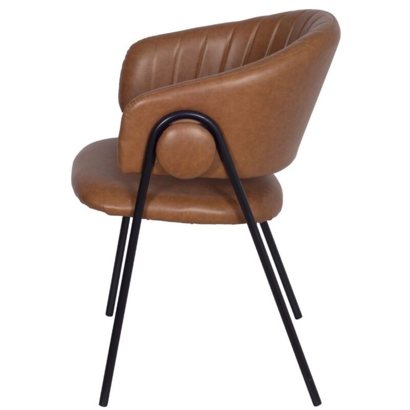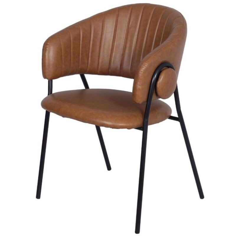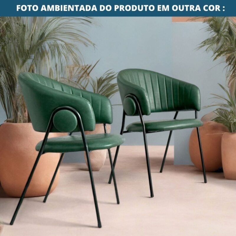 O assento e o encosto são estofados em material de alta qualidade, garantindo maciez e durabilidade. A estrutura metálica com pintura preta fosca traz leveza e resistência à peça, sendo ideal para salas de jantar, escritórios ou ambientes de recepção.
