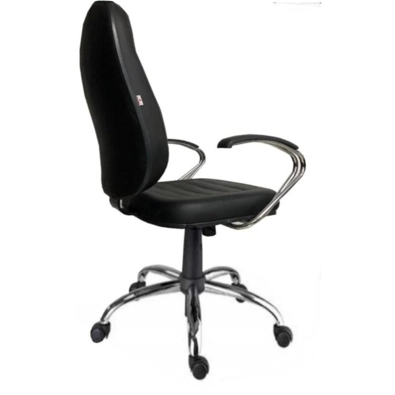 Cadeira Presidente Baixa Costurada C/ Braço Elipty e Base Celta Cromo – Courino Preto