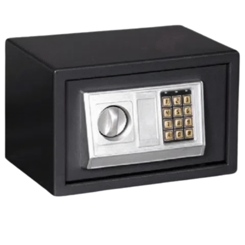 O Cofre Eletrônico Preto é um dispositivo de segurança projetado para proteger seus objetos de valor, documentos importantes, dinheiro e outros itens de forma segura e acessível apenas por meio de uma senha eletrônica.