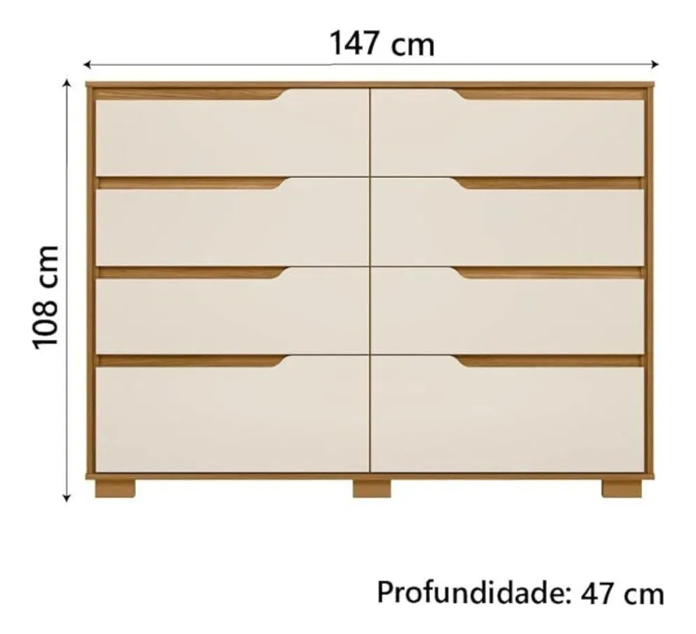 Cômoda Moval Georgia 8 Gavetas Freijo/off White