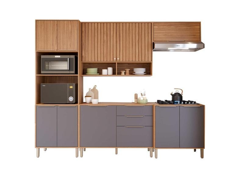 Cozinha Modulada Divina Ripada 5 Peças Com Placa Ripada Mgm – Freijó/Titanium