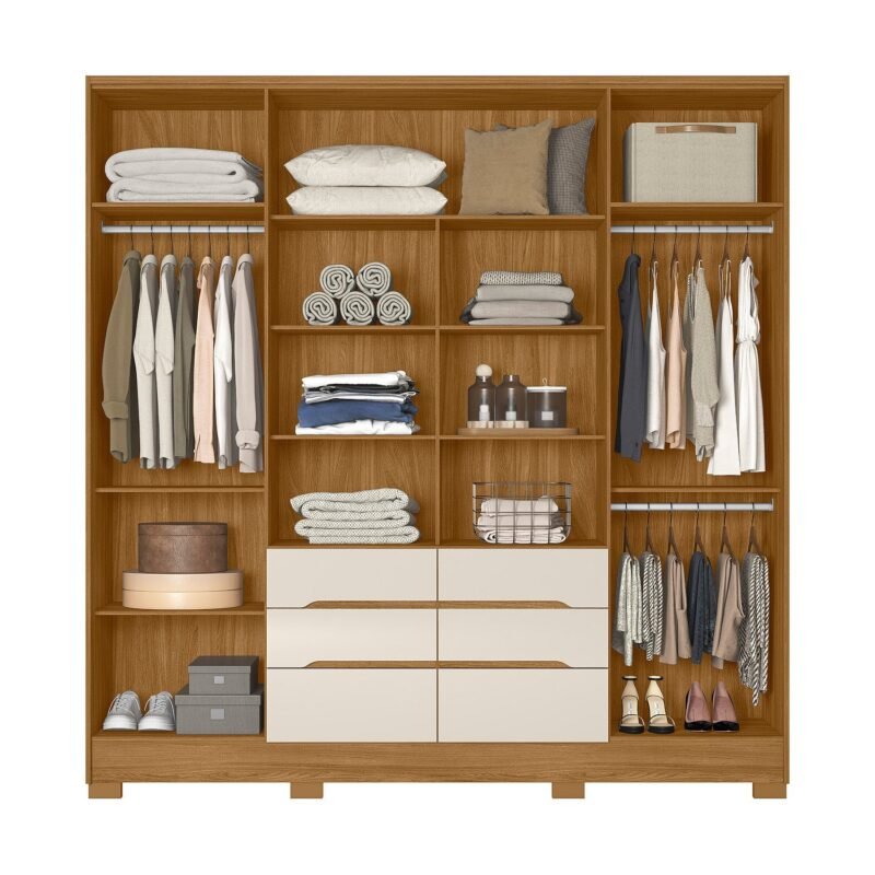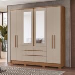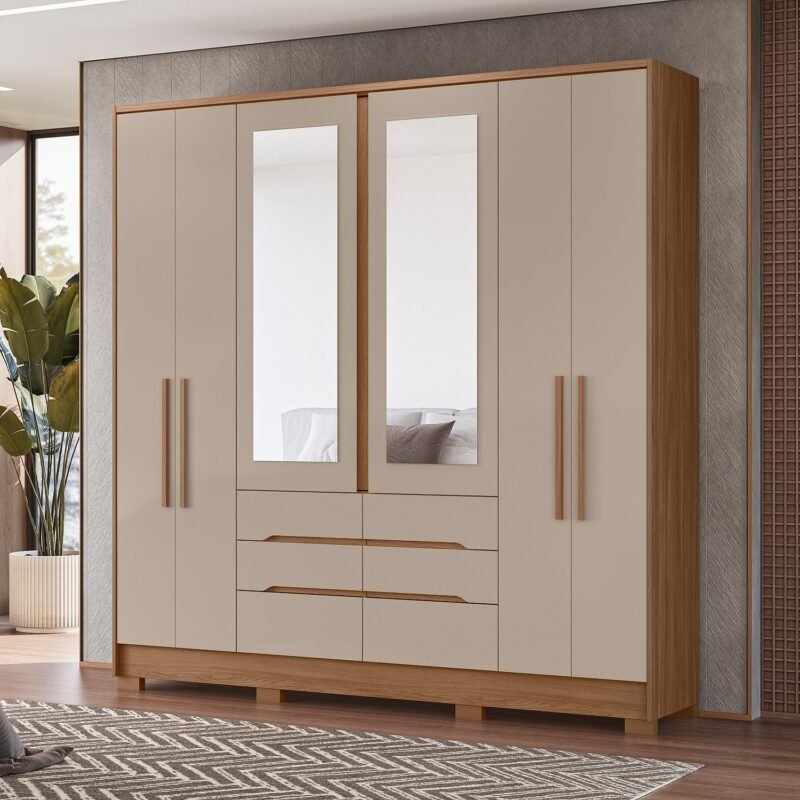 Guarda Roupa Casal San Francisco 6 Portas Freijó Off White com Espelho – Moval
