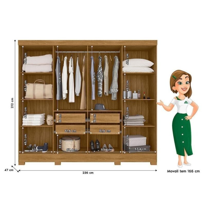 Guarda Roupa Califórnia 4 Portas 3 Gavetas C/ Espelho Ripado Freijó/Off White - Moval