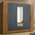 Guarda Roupa Diplomata Frisado 8 Portas C/ Espelho Freijó Cinza Moval