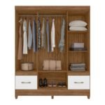 Guarda Roupa Casal 3 Portas Com Espelho Deslizantes 6 Gavetas Arizona - Freijó / Off White