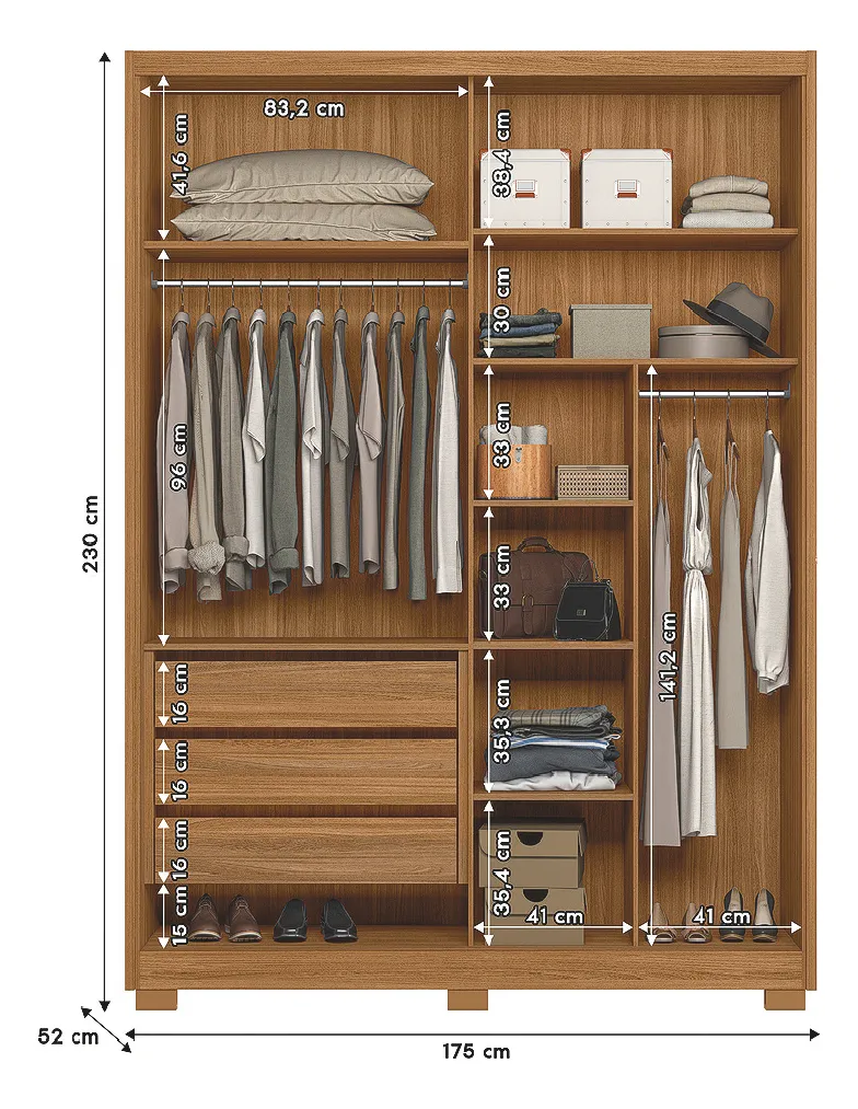 ITENS INCLUSOS: 1 Guarda Roupa, 1 Manual de montagem, 1 Kit Parafusos