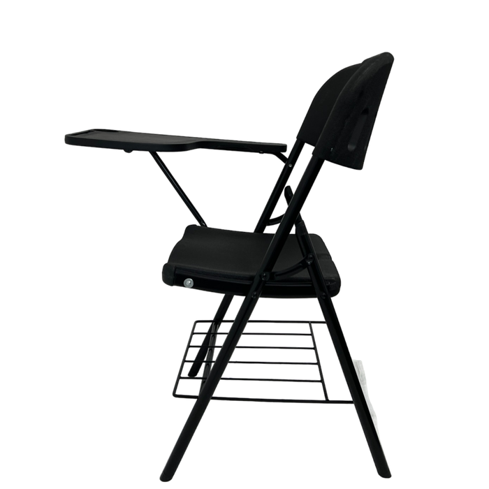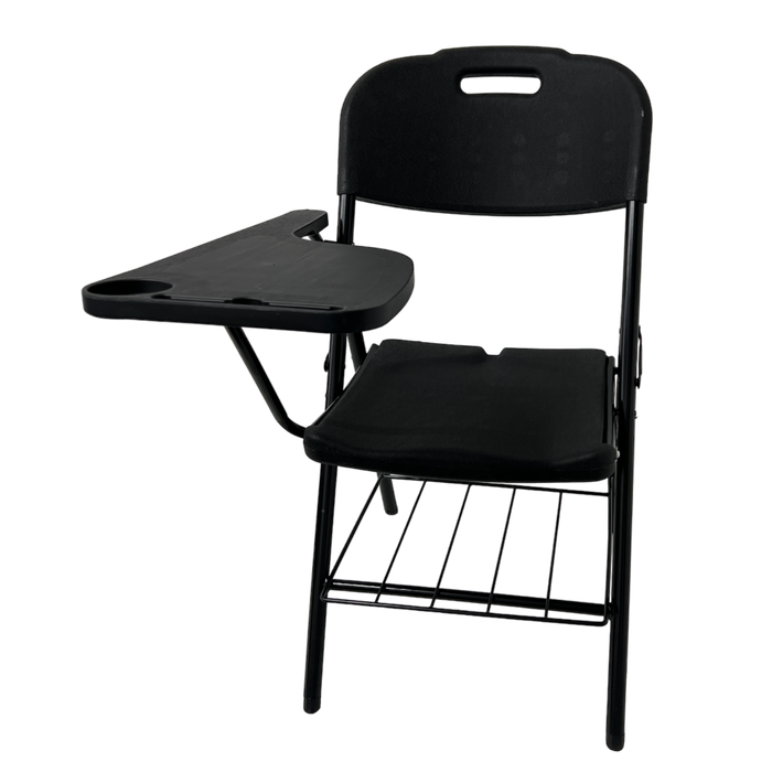 Prancheta: Inclui uma prancheta dobrável e ajustável, ideal para tomar notas, escrever ou usar dispositivos eletrônicos durante aulas, palestras ou reuniões.