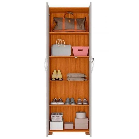 Possui chave para manter seguro todos seus itens e são quatro prateleiras para separar os seus sapatos, bolsas ou outros objetos que você se interessar em colocar.