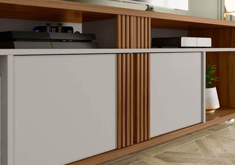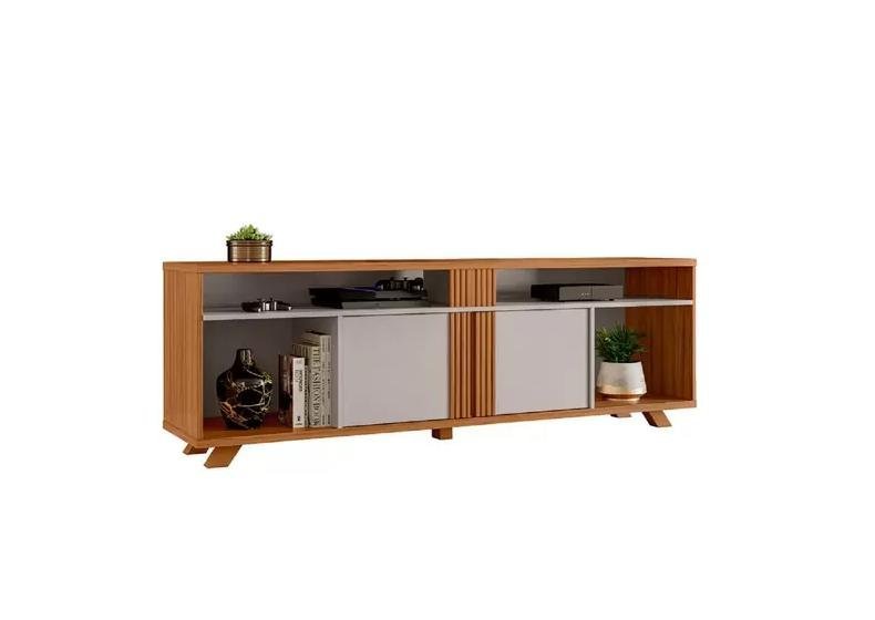 Rack Para Tv Até 75 Polegadas New Cristal 4 Portas Nogueira San Remo/Off White - Caemmun