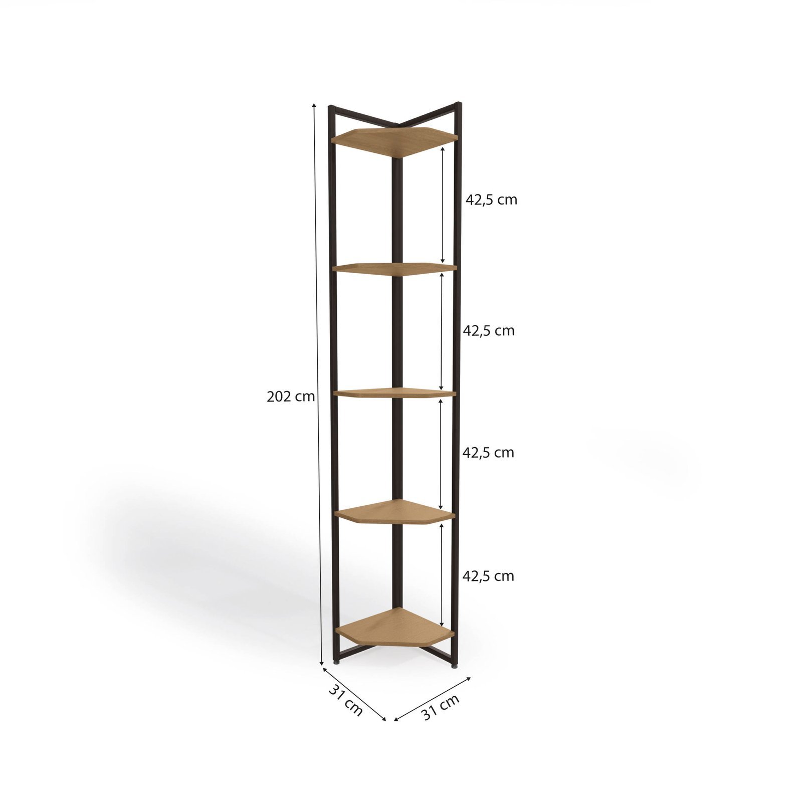 Torre de Canto 5 Prateleiras 2,02×0,31×0,31 Freijo/Preto